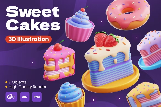 Sweet Cakes 3D Illustrations