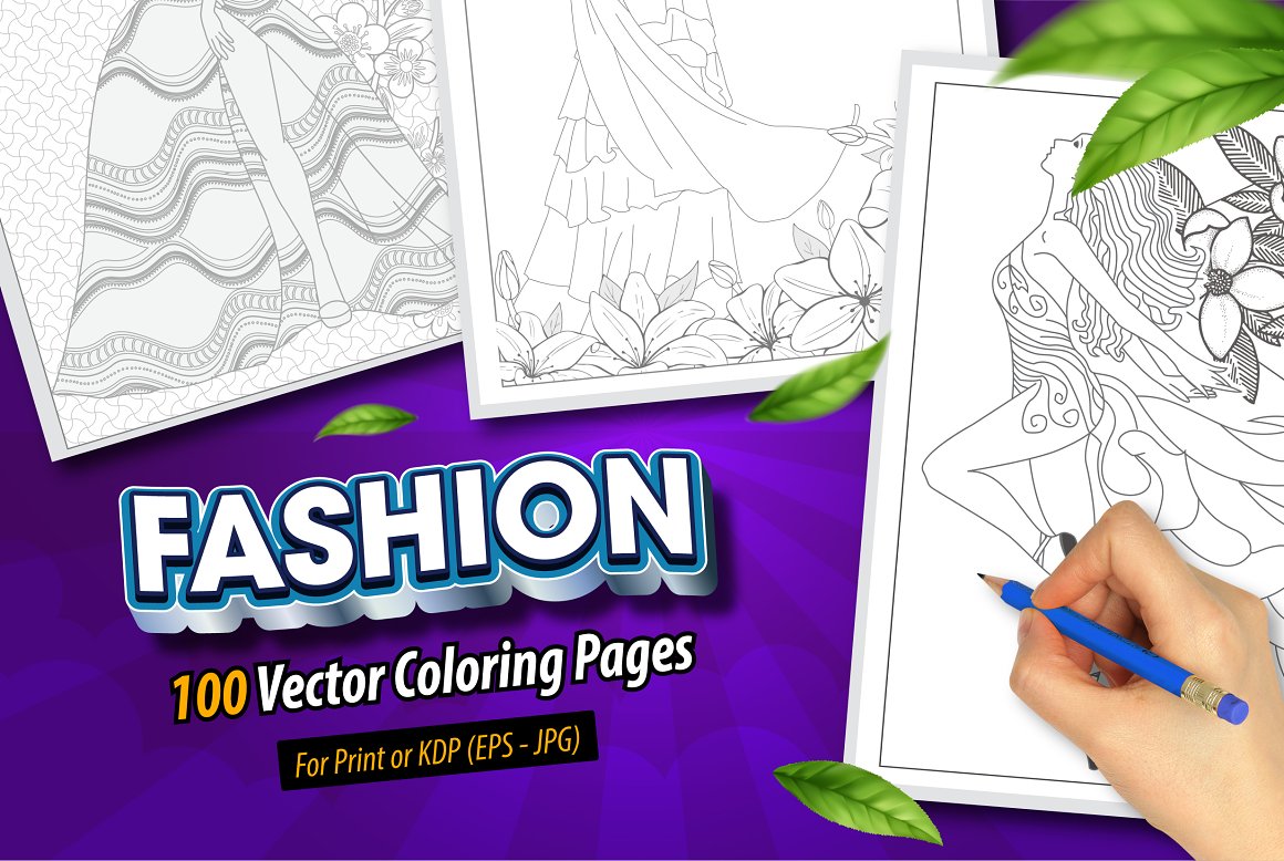 100 Vector Fashion Coloring Pages. High-quality Print ready Files or Amazon KDP design.
