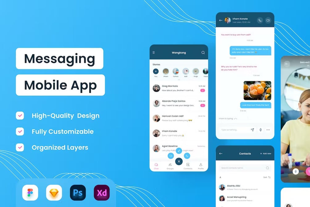 Messaging App - UI Design is a Modern Messaging Mobile App Design UI KIT for IOS and Android with a trendy design that you can use for your next project and make your dream come true.