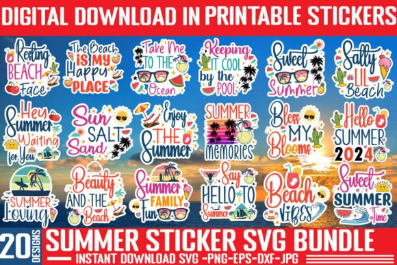 Summer Sticker SVG Bundle, Printable SVG