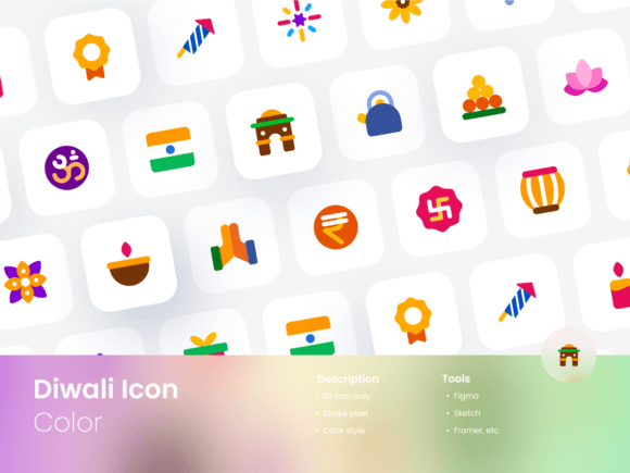 Diwali Icon Set Colored Style