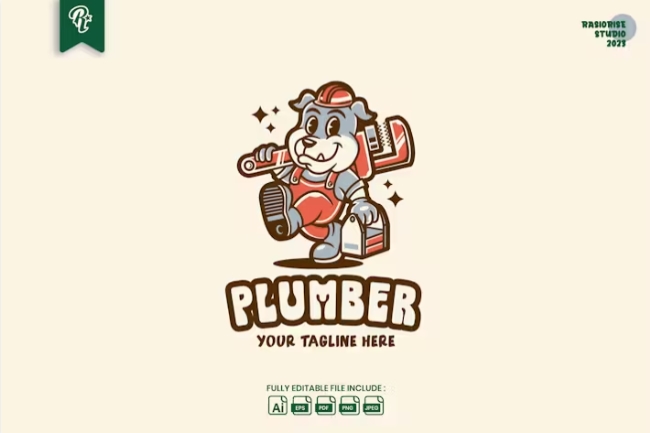 Retro Plumber Dog Cartoon Logo