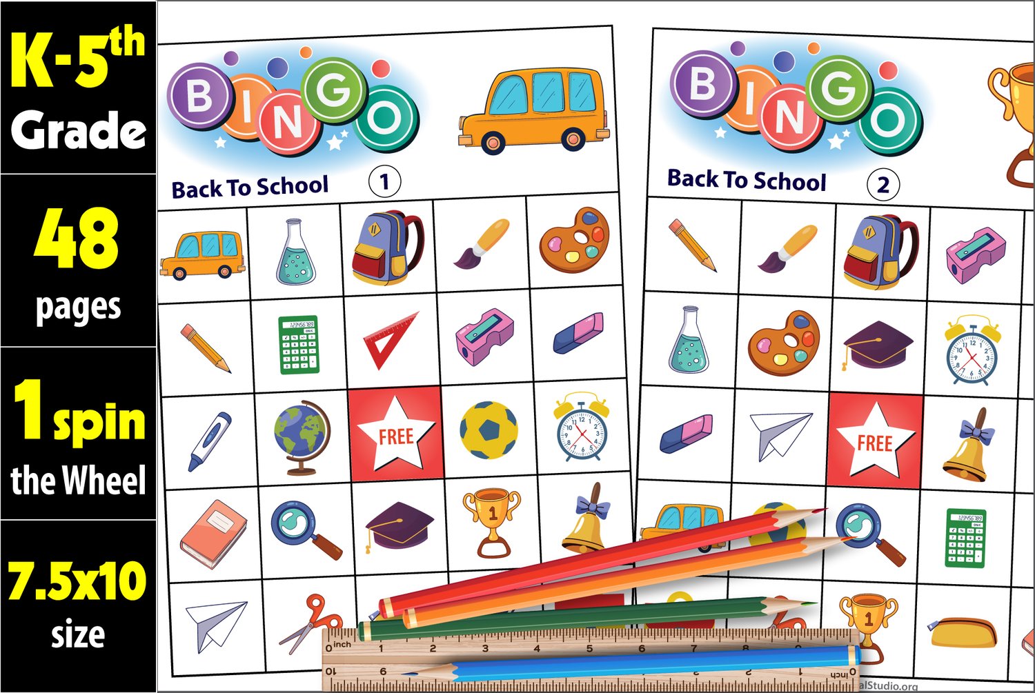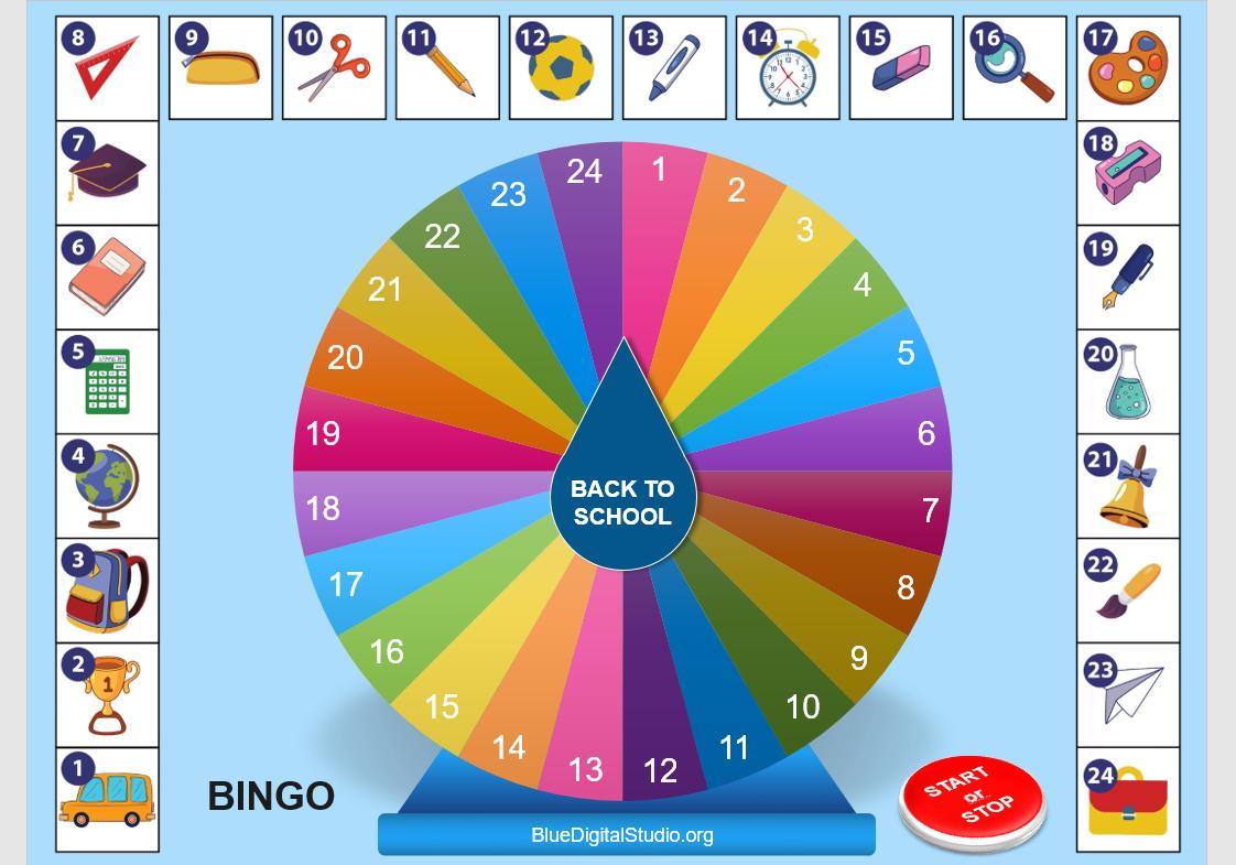 Bingo Digital Games Back To School Bingo Cards And Spin the Wheel Activity