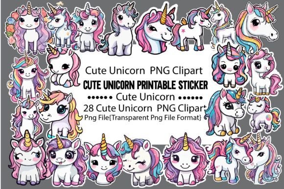 – ✅ 28 Cute Unicorn Printable Sticker PNG Bundle
