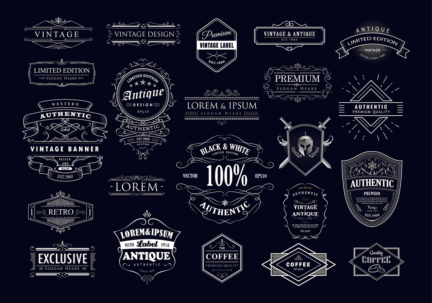 Set of 22 Whiskey label vintage western antique hand drawn retro PNG SVG EPS