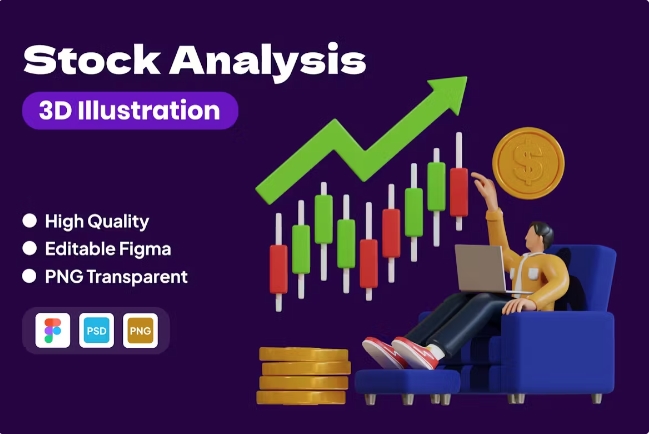 Stock Analysis 3D Illustration