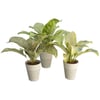 3 various Diffebachia plants in stonware pot.