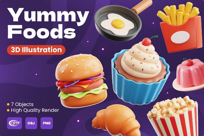 Yummy Foods 3D Illustration