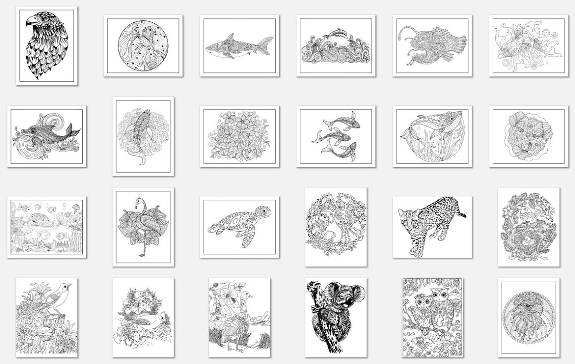 You will receive all 190 Vector Animal Mandala Coloring Pages.