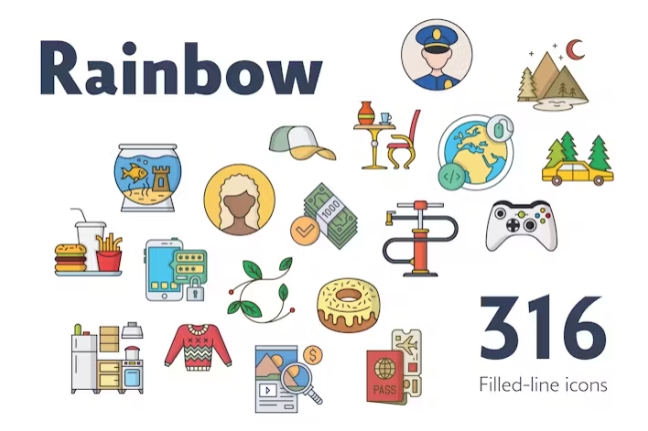 Rainbow 316 filled line icons bundle