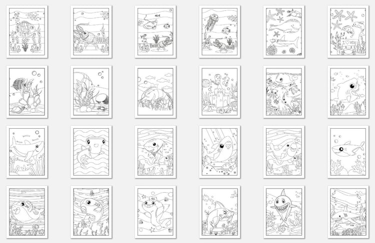 250 Vector Happy Sea Animal Coloring